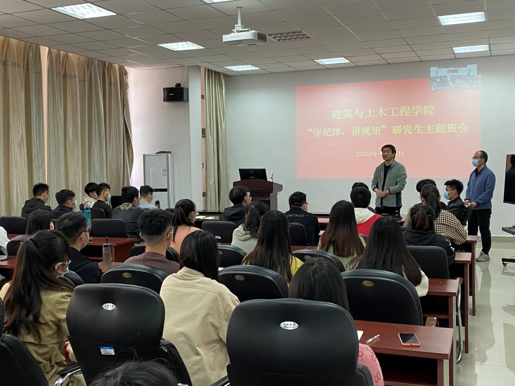 2022年4月18日下午2点,m88 app召开了研究生“守纪律、讲规矩”主题班会。研究生主管院长肖琪聃、研究生班主任马文强和全体研究生线下线上参加了本次班会,会议由马文强主持。