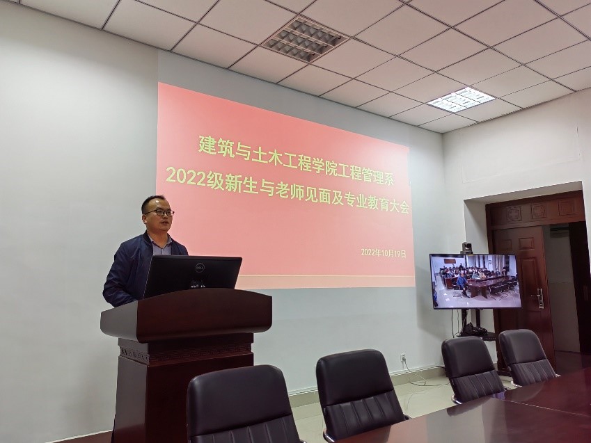 10月19日晚,m88 app工程管理系在综合实验楼206会议室成功召开2022级新生与员工见面及专业教育大会,工程管理系2022级全体员工参会,会议由系负责人张宗领主持,肖琪聃副院长、冀鹏副书记、王颂老师、马文强老师、陈良琼老师、陈晓宇老师、梁维云老师、袁亮老师出席了此次活动。
