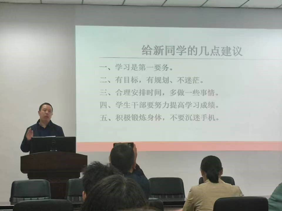 张宗领老师首先给新同学介绍了工程管理系的每位老师及办公地点,新同学在专业方面如有疑惑可主动联系工程管理系的老师们,老师们将会耐心解答。随后张宗领老师给新同学提了几点建议:一、学习是第一要务;二、有目标,有规划,不迷茫;三、合理安排时间,多做事情,锻炼多方面能力;四、员工干部更要努力提高学习成绩;五、积极锻炼身体,不要沉迷手机。希望每位新同学的大员工活充实而有意义,为未来的美好前程打下坚实的基础。
