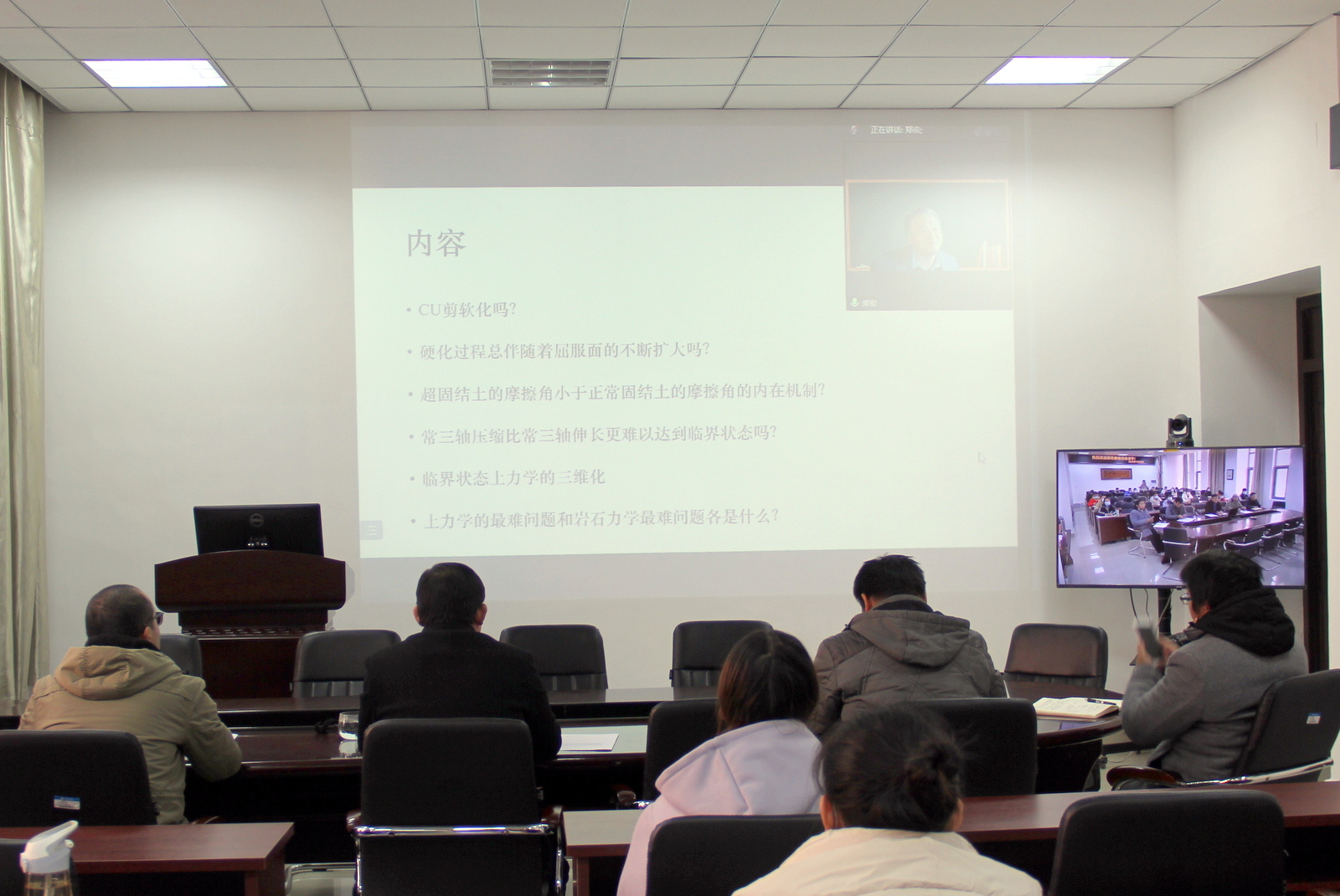 12月5日,应m88 app邀请,北京工业大学郑宏教授通过腾讯会议平台为m88 app师生作了题为“土力学研习的几个心得和疑惑”的学术报告。来自北京工业大学、中国科m88 app武汉岩土所、同济大学、东南大学、哈尔滨工业大学、天津大学、北京航空航天大学、中山大学、武汉大学、中南大学、山东大学、重庆大学、河海大学、上海大学、中国地质大学、西南交通大学、南京工业大学、贵州大学、湘潭大学、华东交通大学、湖南科技大学、三峡大学、湖北工业大学、华北水利水电大学、郑州航空工业管理m88 app和我校等单位的300多位同行专家、博士后、博士生、硕士生共同聆听了报告。m88 app院长周葆春,副院长肖琪聃,青年员工马文强、马全国、张金浩、梁维云和全体研究生参加了此次报告会,报告会由m88 app院长周葆春教授主持。