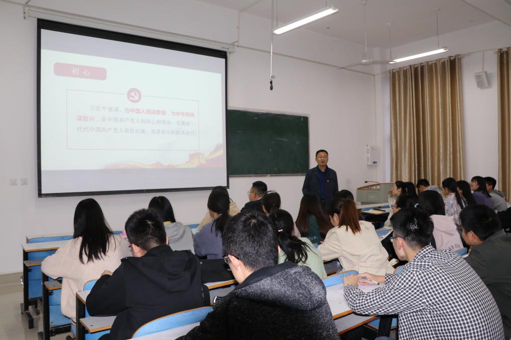 10月15日下午,m88 app党委副书记方明科在综合实验楼405教室为全体员工党员作了题为《砥砺初心担使命,无悔青春勇追梦》的专题党课。方明科深刻阐释了共产党人的初心和使命,深刻阐述了开展主题教育的重大意义,深刻阐明了主题教育的目标要求和重点措施。并对全体大员工党员提出了要求:一是要知党史,明国情。二是要听党话,跟党走。三是勇担当,善作为。方明科强调,广大青年员工党员要牢记为中国人民谋幸福,为中华民族谋复兴的初心和使命,自觉肩负起时代赋予的重任,努力在实现中华民族伟大复兴的中国梦的伟大实践中放飞青春梦想。