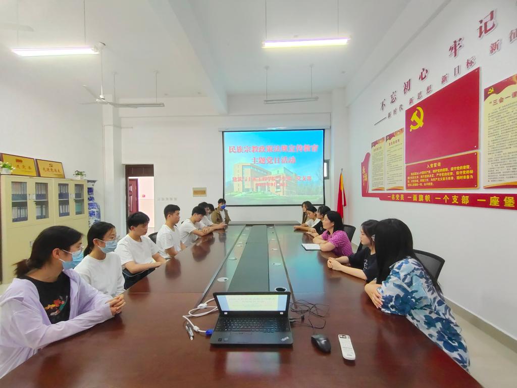 为深入学习贯彻习近平总书记关于民族宗教工作的重要论述,加强党的民族宗教政策的宣传教育,进一步强化党员理想信念教育,9月26日,m88 app员工第一党支部在综合实验楼402会议室开展了“民族宗教政策法规宣传教育”主题党日活动,支部全体党员参加了此次活动。