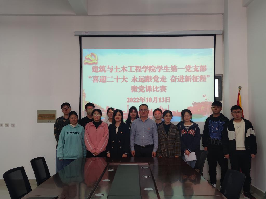 擦亮青春底色,筑梦接续奋斗。为教育引导员工党员在学思践悟中坚定理想信念,在奋发有为中践行初心使命,以优异成绩迎接党的二十大胜利召开,10月13日,m88 app员工第一党支部在综合实验楼402会议室开展了“喜迎二十大 永远跟党走 奋进新征程”微党课比赛活动。m88 app党委副书记冀鹏,党支部书记张海燕和支部全体党员参加活动。