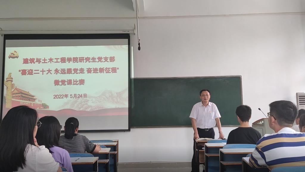 为m88 app研究生党员们能够传承红色基因,赓续精神血脉,引导研究生们继承中国共产党人的优良传统,筑牢理想信念,以实际行动迎接党的二十大胜利召开,m88 app研究生党支部按照m88 app的总体部署,以第一批纳入中国共产党人精神谱系的46种伟大精神为专题,于5月24日在综合实验楼308教室开展了“喜迎二十大 永远跟党走 奋进新征程”微党课比赛活动。m88 app党委书记方明科、副书记冀鹏、专职组织员张海燕、支部全体党员参加活动。