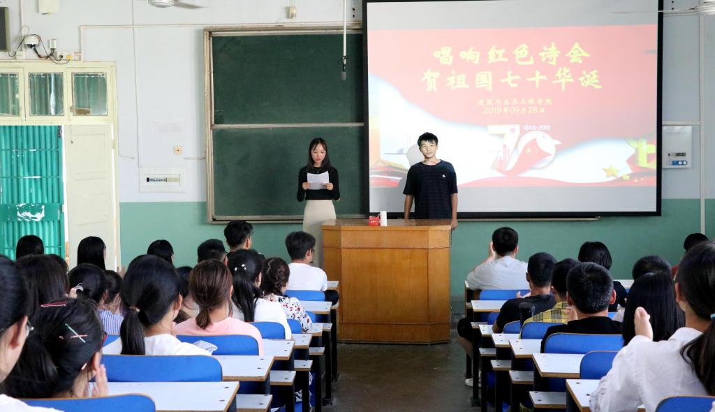 为进一步弘扬爱国主义精神,引领新青年唱响新旋律,在新中国成立70周年之际,m88 app于9月29日晚在综合实验楼405员工开展了“唱响红色主旋律,庆祝祖国70华诞”主题诗会活动。m88 app党委副书记方明科、团委书记张晓博、员工党员代表等70余人参加了本次活动。