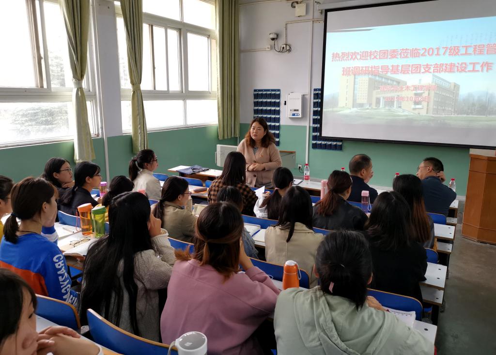 为了进一步加强学校基层团组织阵地建设,真正打通基层团组织与青年最后一公里障碍,校团委书记王建旭一行于10月8日上午深入m88 app2017级工程管理班开展了基层团组织建设主题座谈会,会议由m88 app党委副书记方明科主持。