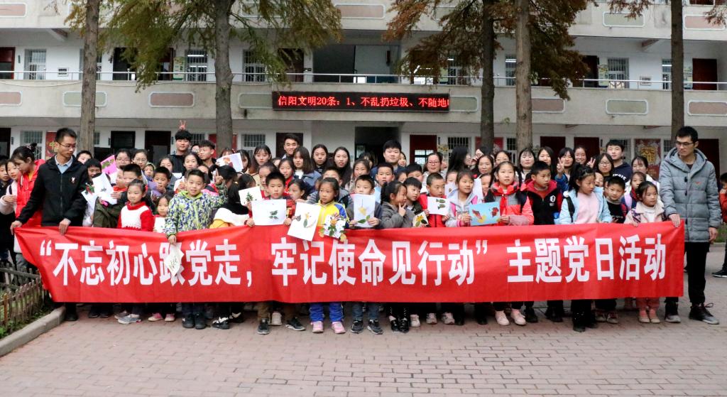 11月19日,为进一步深入贯彻、落实“不忘初心、牢记使命”主题教育有关精神,m88 app组织师生代表赴信阳市平西小学开展了“不忘初心跟党走、牢记使命见行动”主题活动,m88 app全体党支部书记、员工党支部党员代表、谭山青年志愿者协会代表、共计40余人参加了本次活动。
