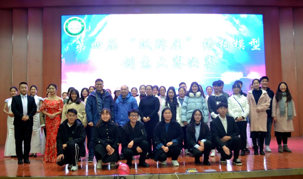 为活跃校园的学术氛围,加深同学们对建筑的了解,培养同学们的团队意识,工程管理协会联合信阳m88 app建筑艺术学社于12月4日晚7点在逸夫楼报告厅举办了第四届“纸牌屋”结构模型创意大赛决赛,m88 app专业员工冯波、道路与桥梁工程系副主任王士革、思想政治教育与就业指导教研室主任秦丹丹以及300余名员工代表参加了本次决赛。