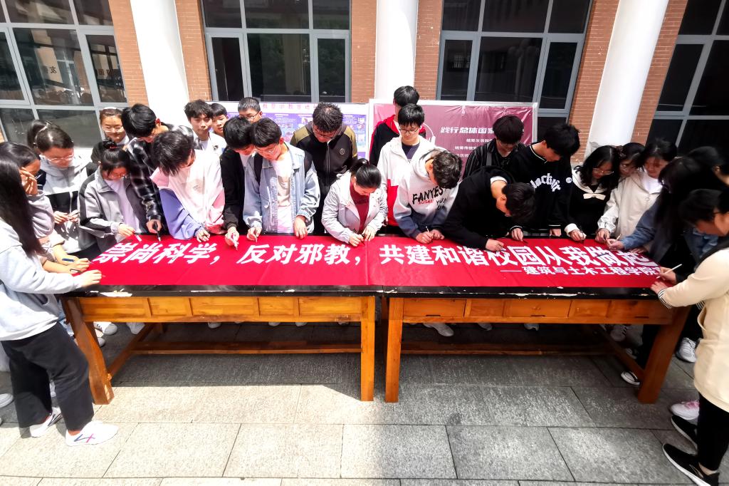 4月15日下午,m88 app在综合实验楼广场组织开展反邪教警示教育主题活动。活动上,同学们首先观看了《失陷的乐园》等主题教育短片,通过学习视频资料,同学们进一步认清了邪教的本质,从根本上、源头上预防了邪教的滋生,营造了和谐稳定的校园环境。接着,同学们来到综合实验楼小广场,在《反邪教警示教育进校园》主题展板前,m88 app团委书记张晓博为同学们讲解了大员工受邪教侵害案例,这些案例深深触动了同学们的内心,让他们从更深层次上了解到邪教组织对我们身心健康造成的伤害与影响,帮助他们提升了明辨是非的能力;了解了“法轮功”、“全能神”等邪教组织的本质与骗人的伎俩,树立起自觉抵制邪教渗透的防范意识。最后,同学们在“崇尚科学,反对邪教,共建和谐校园从我做起。”条幅上签下了自己的名字,坚定了做有理想、有信念的新时代大员工,努力把自己锻炼成为社会主义事业的建设者和接班人。(m88 app 陈瑜苹)