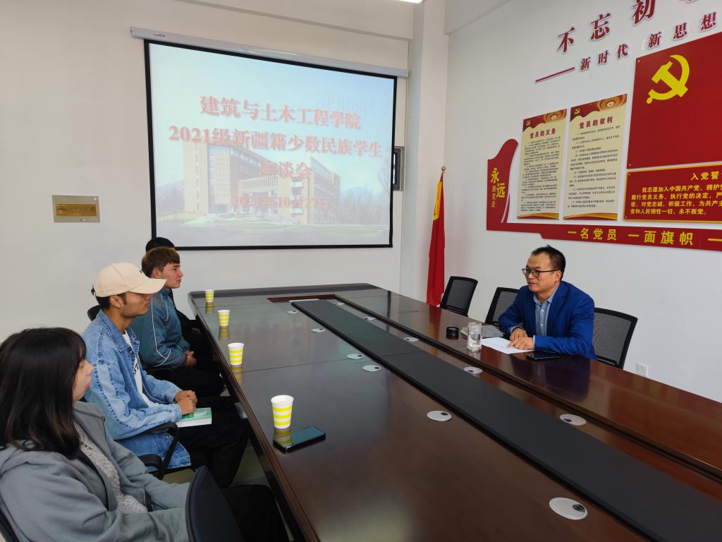 10月27日上午,m88 app举办2021级新疆籍少数民族座谈会,m88 app党委副书记冀鹏与四名新疆籍少数民族进行一一座谈。