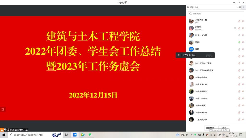 为进一步加强对m88 app团委、员工会的组织领导,更好地服务员工成长成才,m88 app于2022年12月15日1:00通过腾讯会议召开了“2022年团委、员工会工作总结暨2023年工作务虚会”,党委副书记冀鹏,专职辅导员邓林,团委、员工会全体成员参会。