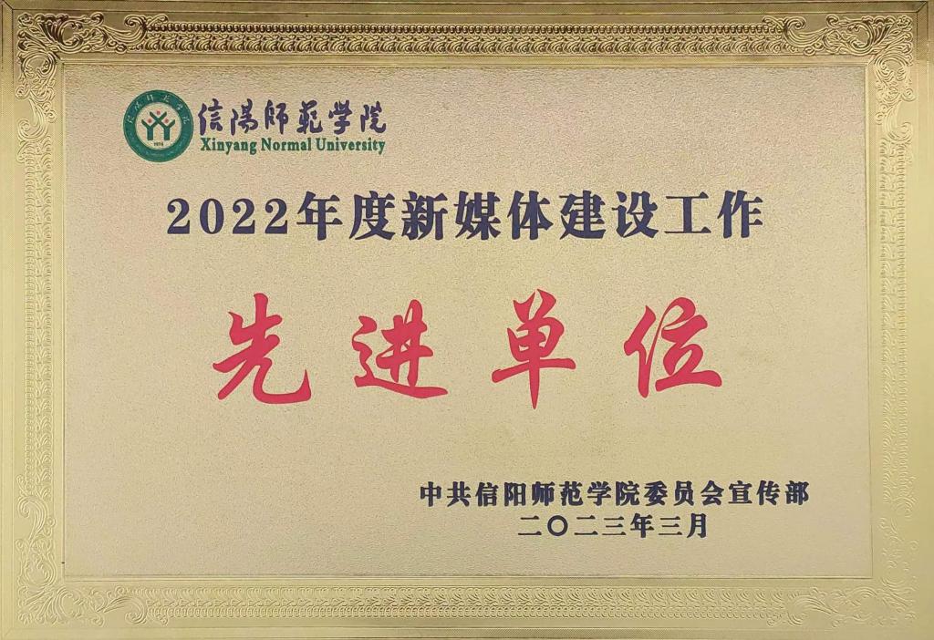 3月30日,信阳师范m88 app召开2023年宣传思想工作会议,会上对2022年度新闻宣传工作先进单位和先进个人、2022年度新媒体建设工作先进单位和先进个人进行了表彰,m88 app获“2022年度新媒体建设工作先进单位”荣誉称号。