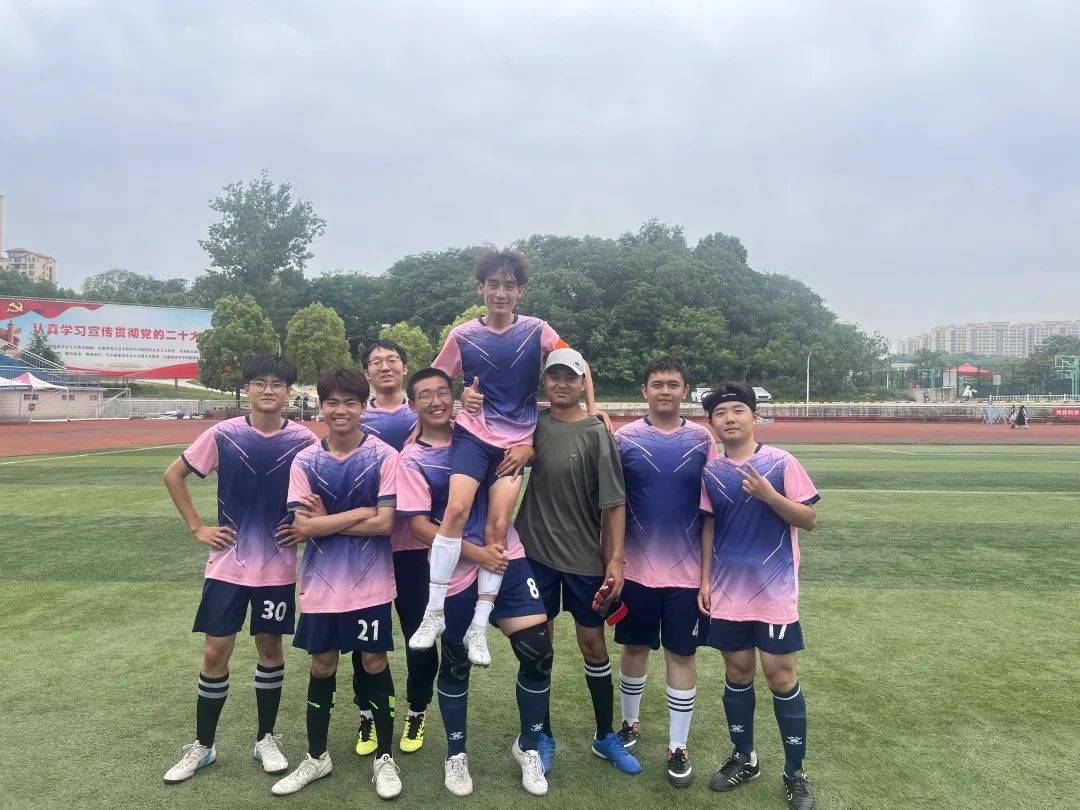 本届“绿茵杯”男子足球赛共有12个m88 app进行角逐,m88 app来自2021级和2022级的8名小将首次参赛。作为一支刚组建的足球队,他们朝气蓬勃、斗志昂扬,为比赛做好充足准备。赛前刻苦训练,赛上奋力拼搏,赛后认真总结,以小组第一出线,并在八进四淘汰赛中击败强敌,最终取得了第四名的好成绩。