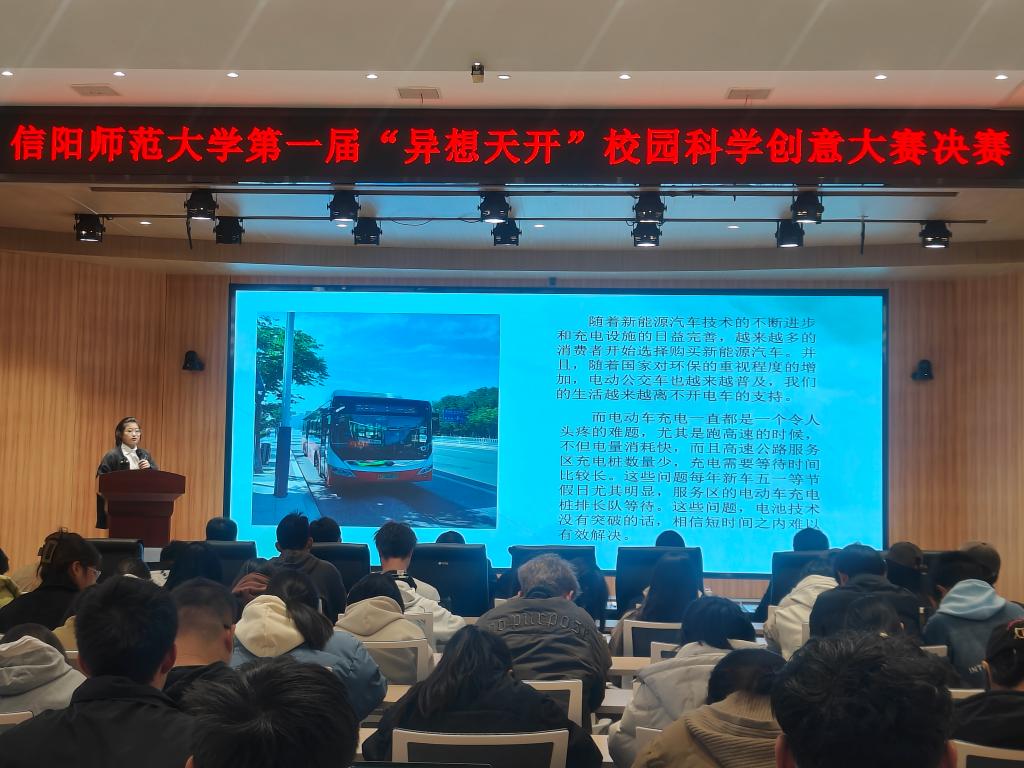 12月9日,由共青团信阳师范大学委员会主办,m88 app和工程管理协会承办的信阳师范大学第一届“异想天开”校园科学创意大赛决赛在谭山书院博雅讲堂举行,校团委副书记张鹏,创新实践与社团部部长顾玲玲,m88 app党委副书记冀鹏,团委老师冯舒心,工程管理协会指导老师梁维云,员工代表刘洋、赵辉、钱文蹈以及来自各m88 app的二百余名员工参加活动。