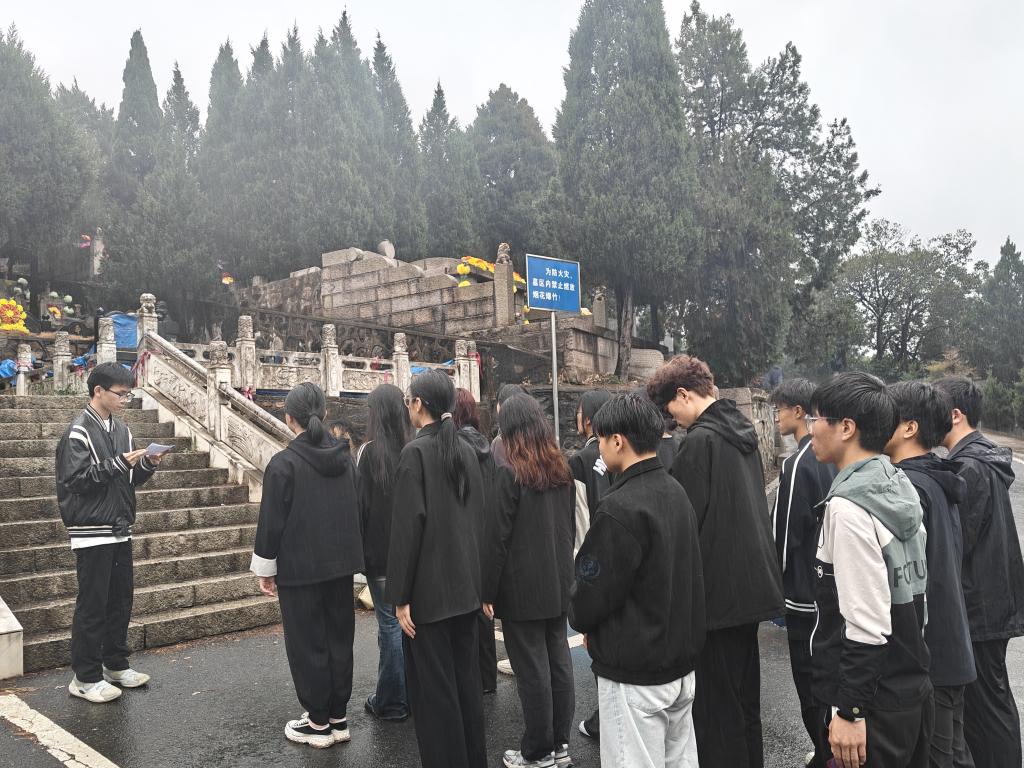 上午八点,带队老师与同学们乘车到达陵园并有序进入,在陵园中央曹灿章将军的纪念碑前,由员工党员卞硕硕主持的悼念仪式在庄严肃穆的氛围中举行。同学们排成整齐的方阵,向烈士敬献花篮;集体低头默哀一分钟,藉以表达对已逝先贤的致敬与追思;环绕纪念碑一周,献上一朵朵小白花,表达自己对先烈们的敬仰之情。