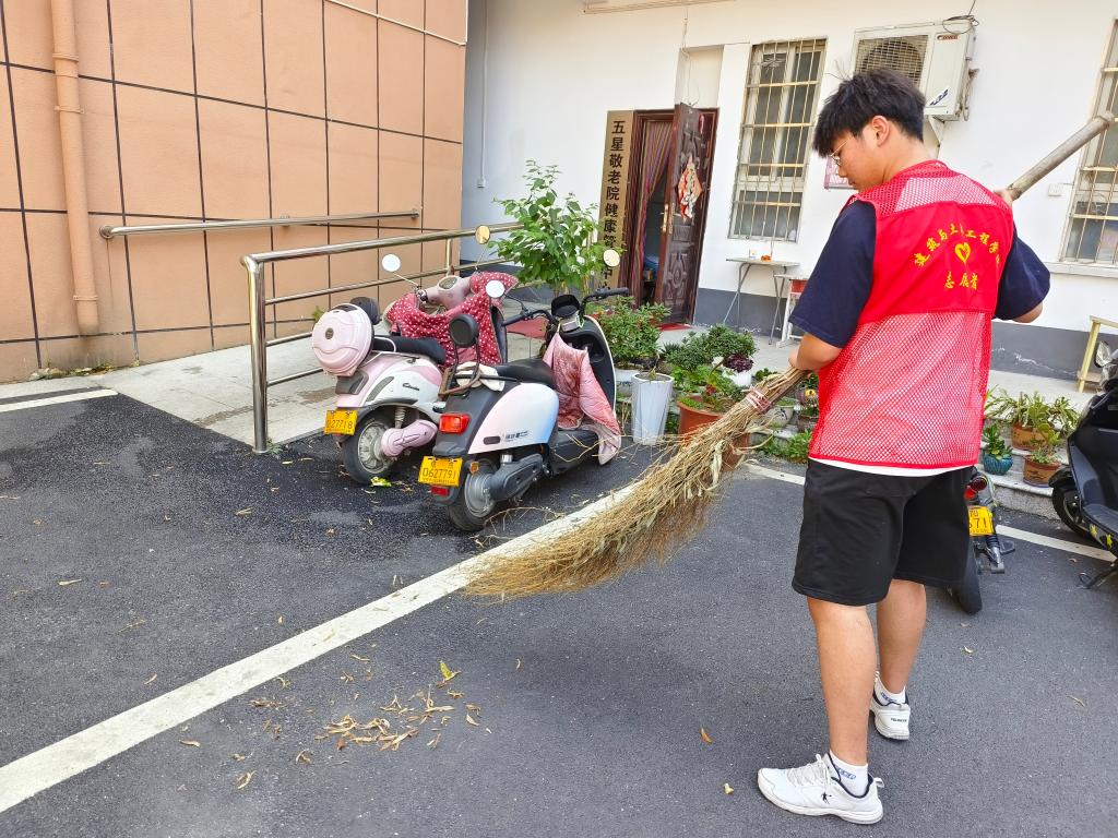 抵达敬老院后,同学们把精心准备的水果、牛奶等慰问品轻轻递到老人手中,便马上行动起来,大家有分工有合作,有的为老人整理床褥,打扫房间、擦栏杆、晒被子,为老人们营造干净整洁的居室环境;有的陪老人在院子里晒太阳,给他们揉揉肩捶捶背,耐心倾听老人们讲述过往,给他们讲述学校发生的趣事,汇报自己的学习情况;最后大家一起合照留念,老人们还给志愿者赠送了小礼物。