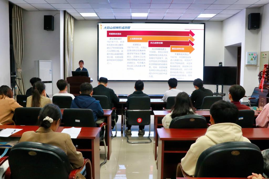 为弘扬大别山红廉文化,强化价值引领,在前期各团支部开展人人讲价值观故事的基础上,10月29日,m88 app在综合实验楼206会议室举行大别山红廉文化育人专项活动暨讲价值观故事大赛,m88 app党委副书记王凯、团委负责人冯舒心以及各团支部员工代表参加活动。