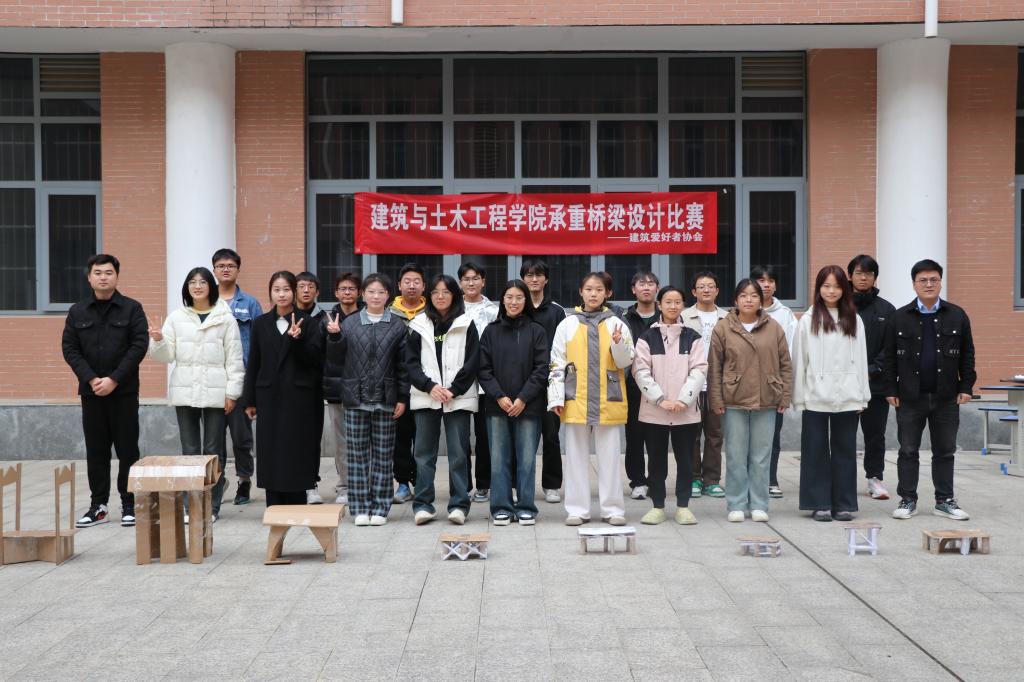 11月23日下午,m88 app建筑爱好者协会在综合实验楼小广场举办承重桥梁设计大赛,m88 app团委负责人冯舒心,社团指导老师吕强、社团部分员工以及参赛选手参加活动。