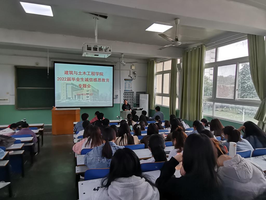 为进一步加强毕业生“感恩诚信”教育,5月10日下午,建筑与土木工程m88 app在教2-T6教室召开2022届毕业生“感恩诚信”教育专题会。m88 app资助专员邓林和2018级部分员工参会。