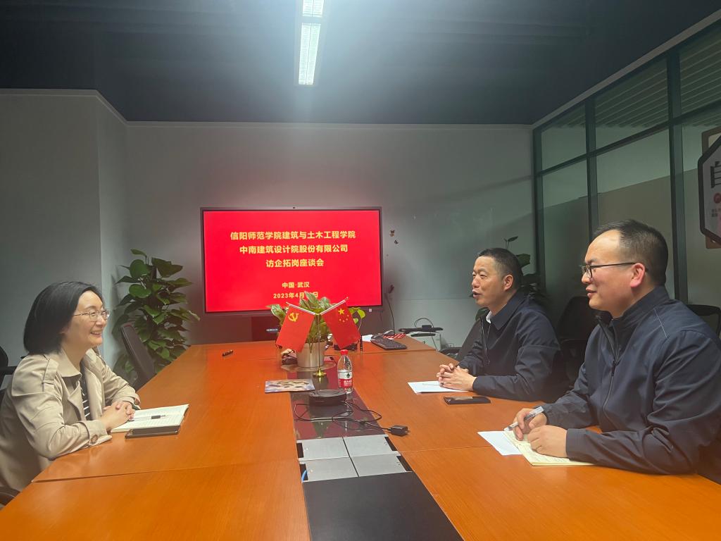 为进一步加强校企合作,千方百计开拓更多就业岗位,4月13日,信阳师范m88 app招生就业处副处长兼大员工就业创业指导中心主任王松亭、m88 app党委副书记冀鹏前往中南建筑设计院股份公司开展访企拓岗活动。