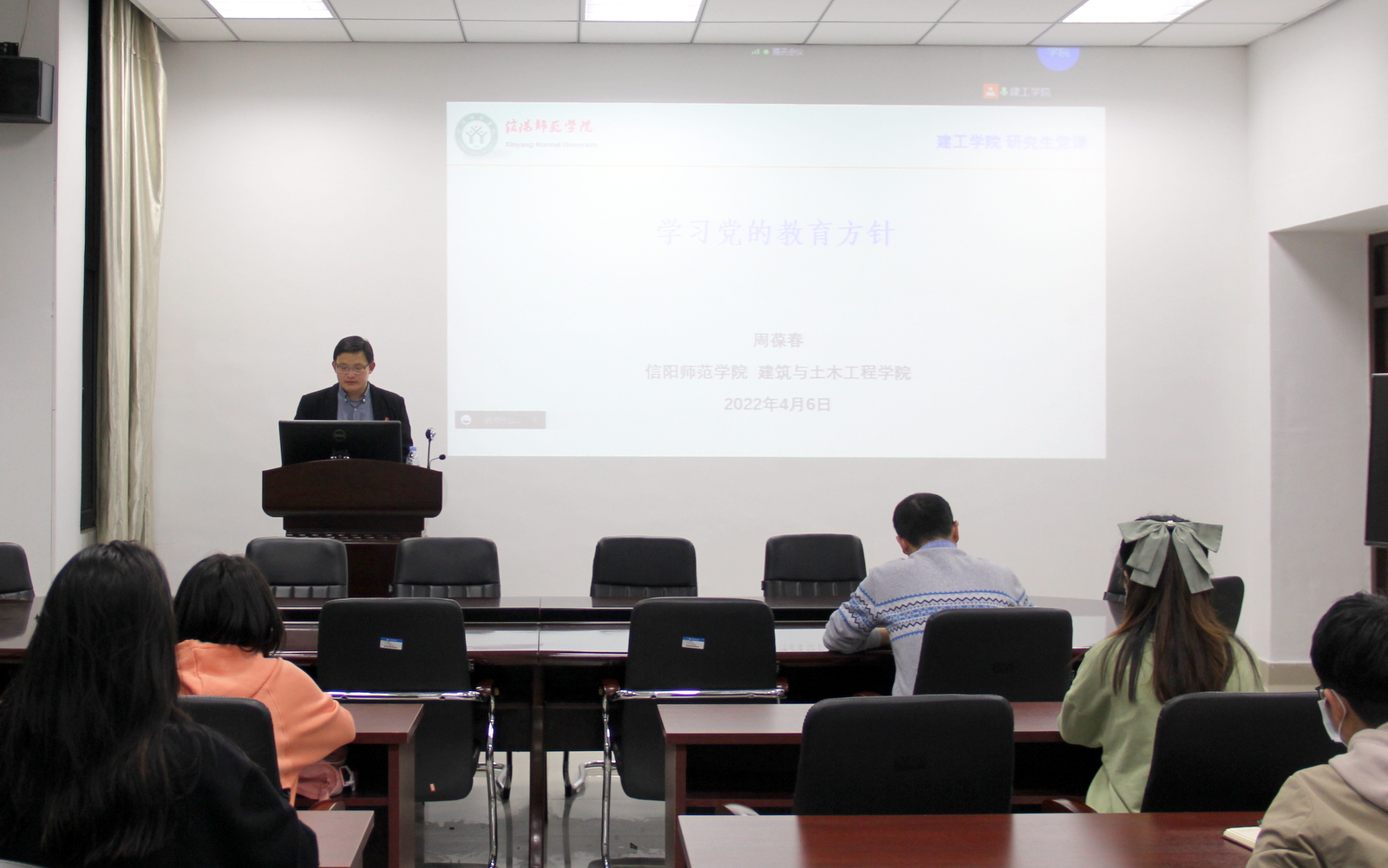 2022年4月6日晚上,m88 app院长、河南省高等学校优秀共产党员周葆春同志在综合实验楼206室为研究生上党课,学习党的教育方针,研究生班主任马文强和全体研究生线下线上参加本次活动。