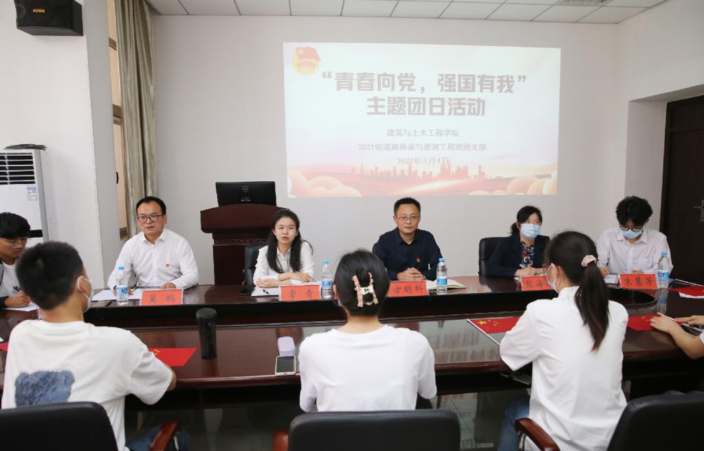 5月4日下午,m88 app2021级道路桥梁与渡河工程班团支部“青春向党 强国有我”主题团日活动在综合实验楼206会议室举行。校团委副书记常青、m88 app党委书记方明科、党委副书记冀鹏和共青团员代表共40余人参加活动。活动由班级团支书赵琦琦主持。