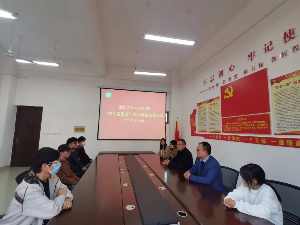 为贯彻落实学校资助政策,让员工感受党和国家带来的温暖,11月24日上午,m88 app在综合实验楼402会议室举行“寒冬送温暖”爱心棉被发放仪式。m88 app党委书记方明科、副书记冀鹏以及受资助员工代表参加活动,仪式由冀鹏主持。