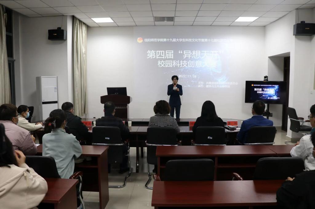 为深入学习党的二十大精神,进一步丰富校园文化生活,搭建具有时代特征的大员工校园科技艺术活动平台,由校团委主办,m88 app承办的第四届“异想天开”校园科学创意大赛决赛,于11月24日晚7点在综合实验楼206会议室举行。m88 app党委副书记冀鹏,校团委顾玲玲老师,生命科学m88 app魏雪锋老师,历史文化m88 app王娟老师,m88 app梁维云老师,作为评委参加了本次大赛。